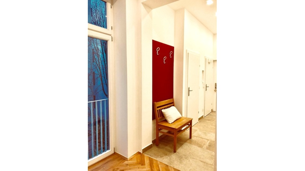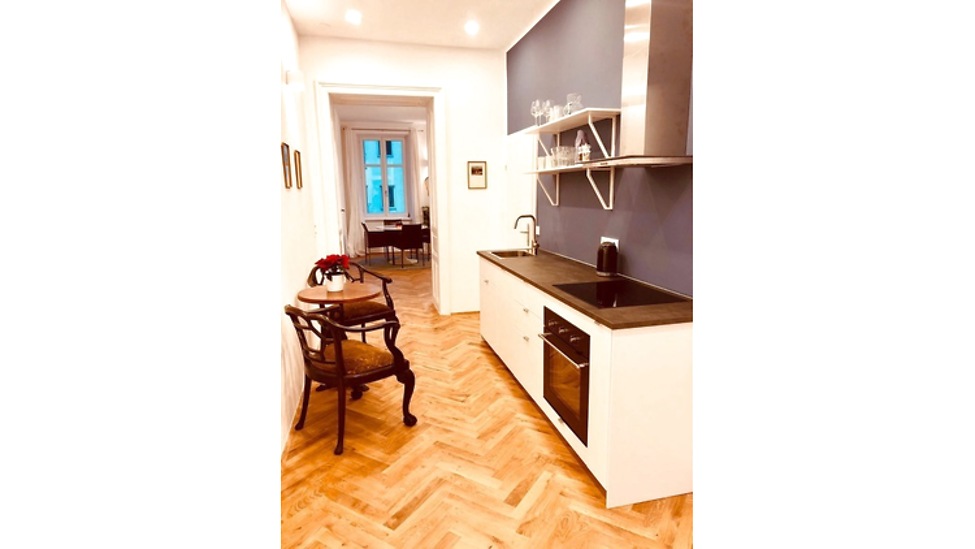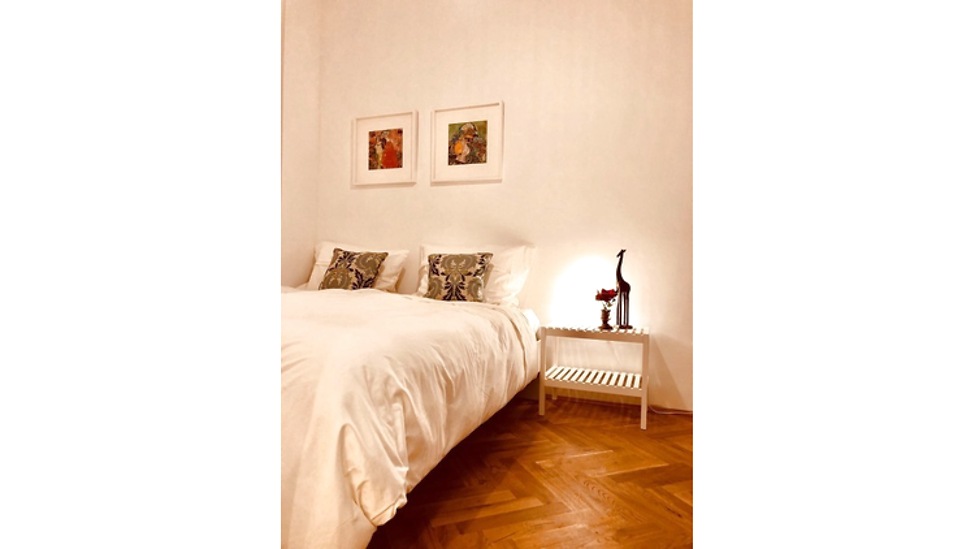 General information High-quality apartment in the center of the 7th district; the bedroom has a large bed; living and dining area with pull-out couch; floor heating throughout the apartment; quiet, green interior
